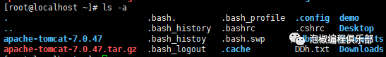 ls 输出当前目录下的文件名和目录名。需要注意的是此时的输出并不包含隐藏文件和隐藏的目录。这里以a开头的文件在第一个。