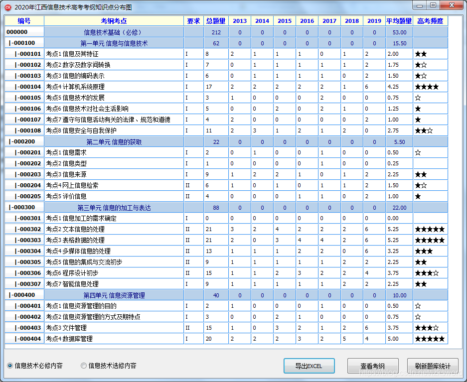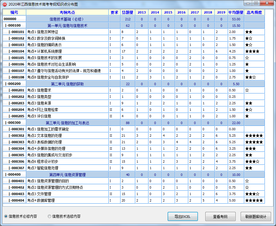 历年江西全国信息技术高考试卷含高考考纲分布,本人精心统计而成!谢谢大家支持