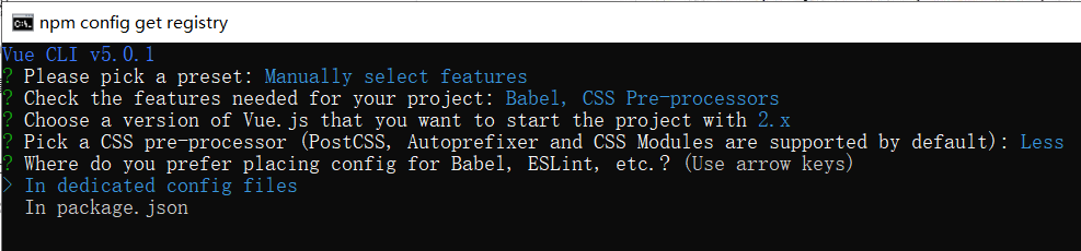 选择第一项,把Babel、Eslint等插件配置项放到自己独立的配置文件中