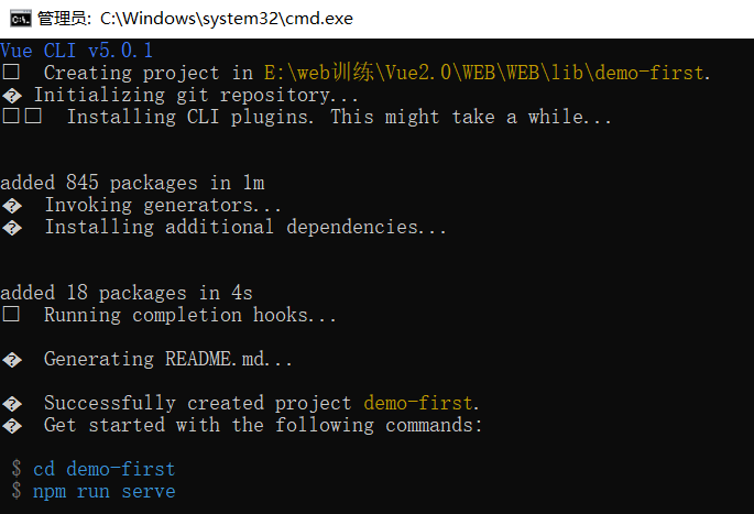 vue create demo-first(项目名)