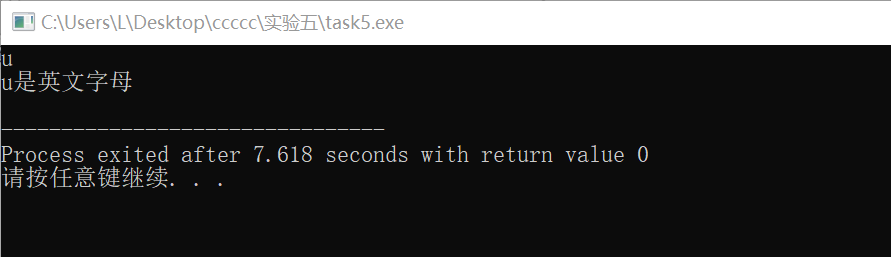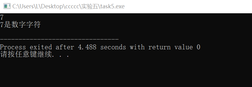 #include <stdio.h> int main(){ char x; x=getchar(); if(x>='0'&&x<='9') printf("%c是数字字符\n",x); else if(x>='A'&&x<='z') printf("%c是英文字母\n",x); else printf("%c是其他字符\n",x); return 0; }