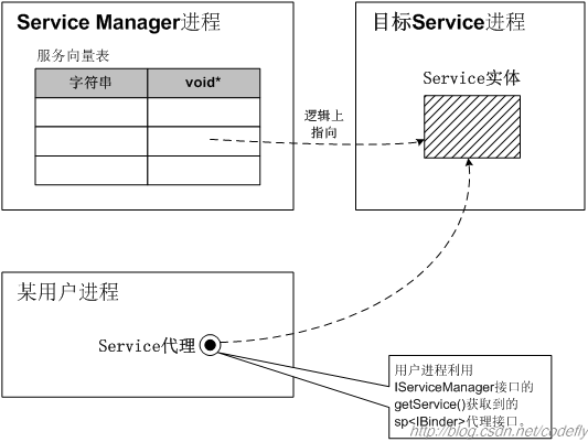 SMS记录了所有系统service所对应的Binder句柄,它的核心功能就是维护好这些句柄值。后续,当用户进程需要获取某个系统service的代理时,SMS就会在内部按service名查找到合适的句柄值,并“逻辑上”传递给用户进程,于是用户进程会得到一个新的合法句柄值,这个新句柄值可能在数值上和SMS所记录的句柄值不同,然而,它们指代的却是同一个Service实体。句柄的合法性是由Binder驱动保证的,这一点我们不必担心。