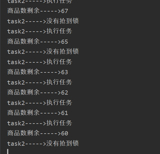 看到没有,抢到锁的,进行商品减1操作,没有抢到的只能等待了。