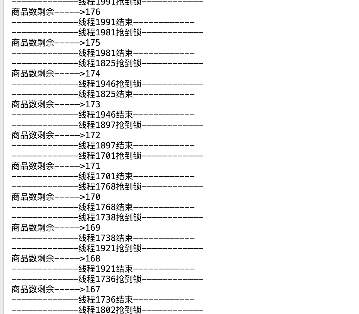 可以看到,并发情况下,到底谁抢到了锁并不确定,但是利用redis单线程原因,可以保证库存到最后都是正确到,事务性良好。其实秒杀功能也是这个原理,
