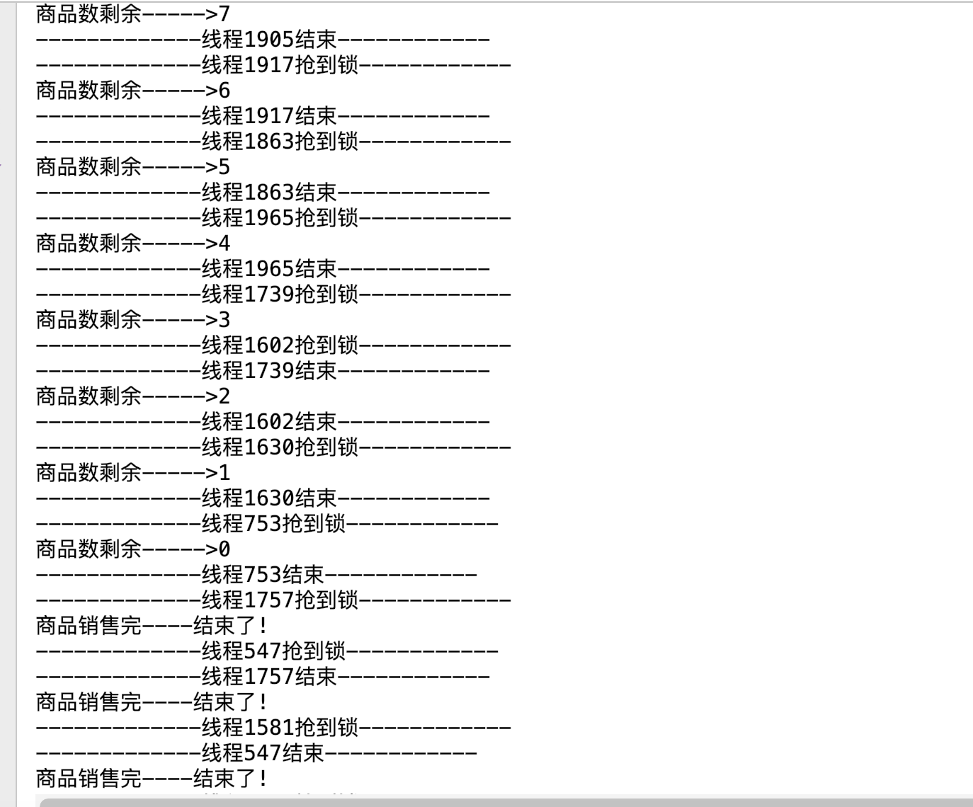 System.out.println("-------------线程"+id+"抢到锁------------");