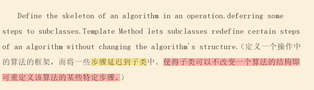 其实模板模式相对于前面介绍的要简单很多,父类就是模板,子类按照我定义的模板规则(也叫算法来执行就可以).