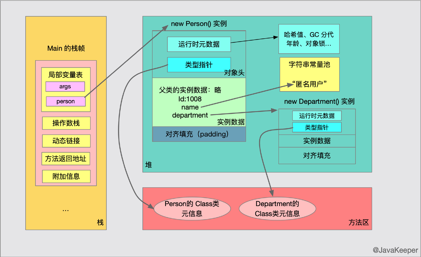 - 对象的另一部分类型指针,即对象指向它的类元数据的指针,虚拟机通过这个指针来确定这个对象是哪个类的实例(并不是所有的虚拟机实现都必须在对象数据上保留类型指针,也就是说,查找对象的元数据信息并不一定要经过对象本身)。