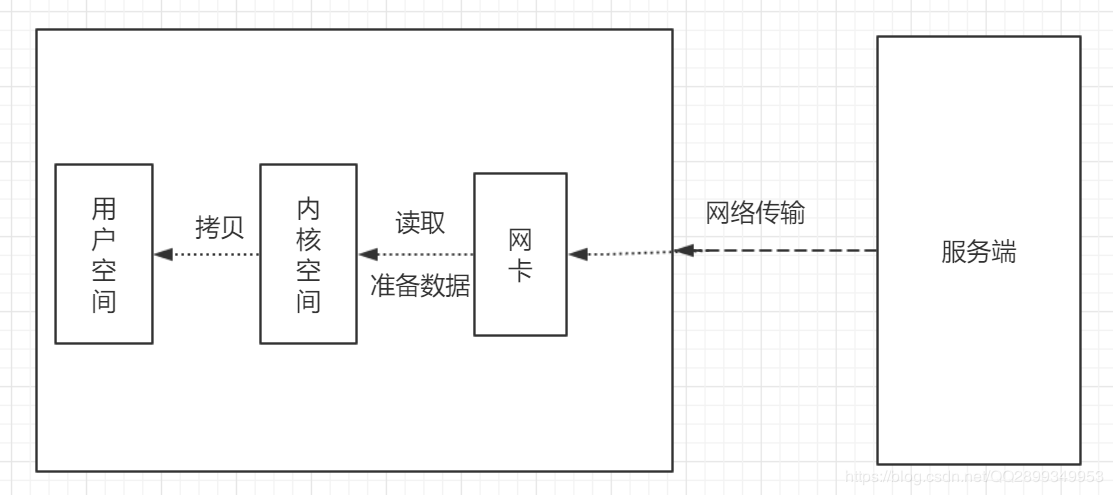 当然了,在网络里面就要变通一下,不在是对硬件执行I/O操作,而是对网络上的数据,示意图如下: