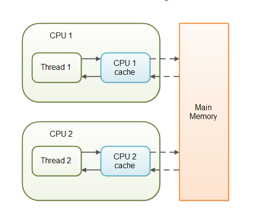 当对非 volatile 变量进行读写的时候,每个线程先从内存拷贝变量到 CPU 缓存中。如果计算机有多个 CPU,每个线程可能在不同的 CPU 上被处理,这意味着每个线程可以拷贝到不同的 CPU cache 中,而声明变量是 volatile 的,JVM 保证了每次读变量都从内存中读,跳过 CPU cache这一步。