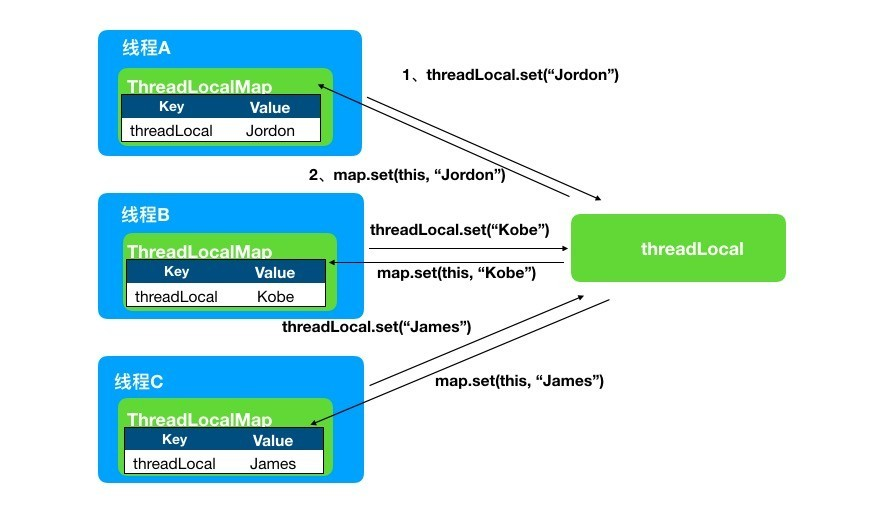 当前的ThreadLocal对象就是线程本地ThreadLocalMap中的key,线程存储的值就是value;