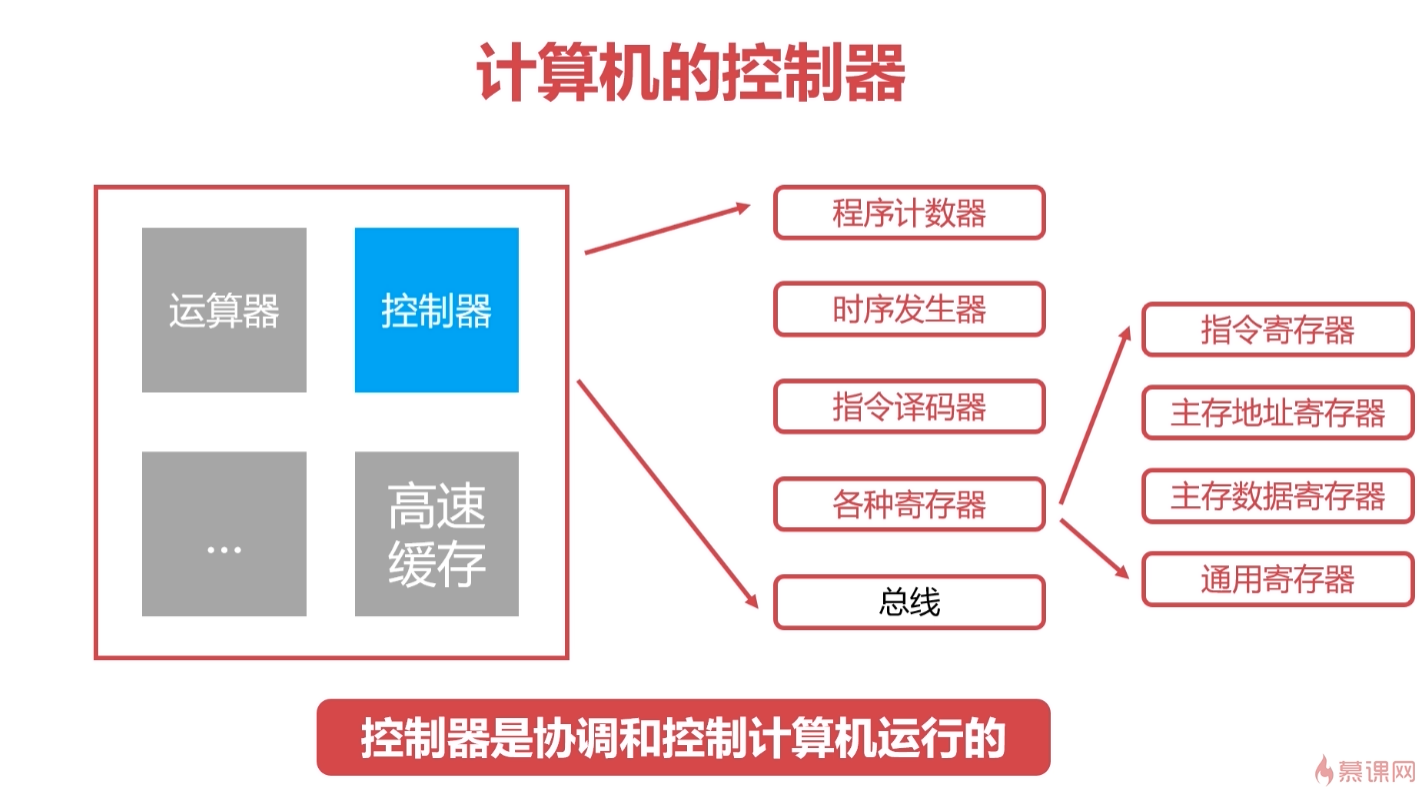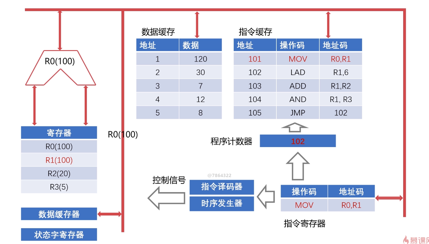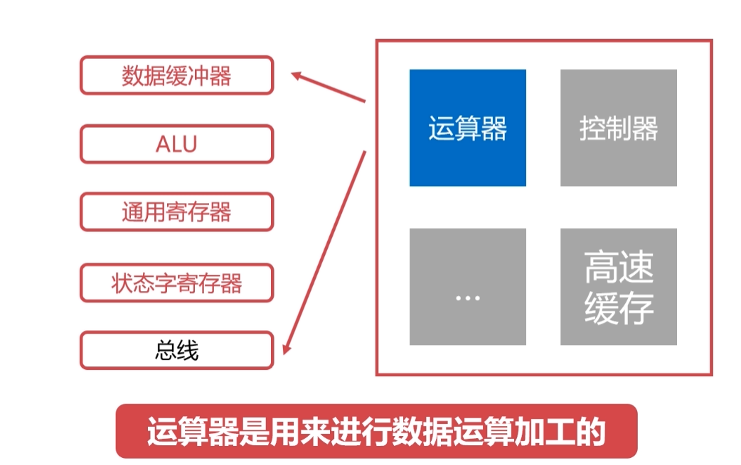 - 指令译码器:计算机指令由操作码和地址码组成,指令译码器翻译操作码对应的操作及控制传输地址码对应的数据;