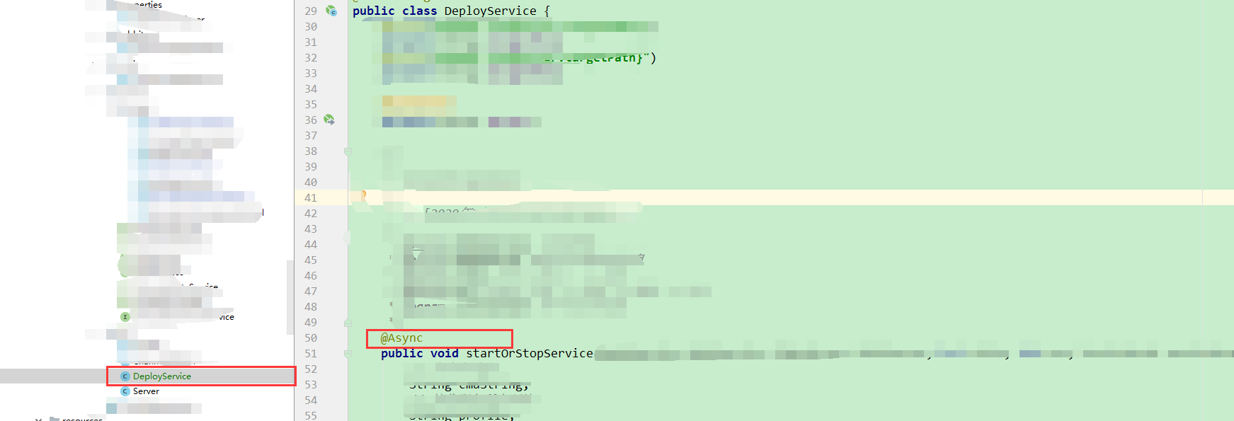 2、异步执行的方法需单独写在一个类中