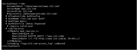 # vim /usr/local/apache2 .4/conf/extra/httpd-vhosts.conf //改写123.com虚拟主机