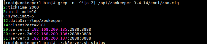 [root@zookeeper1 conf]# grep -n ‘^’[a-Z] zoo.cfg