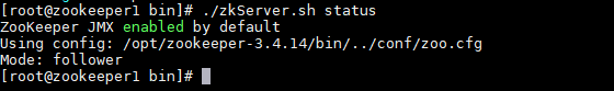 [root@zookeeper1 bin]# ./zkServer.sh status