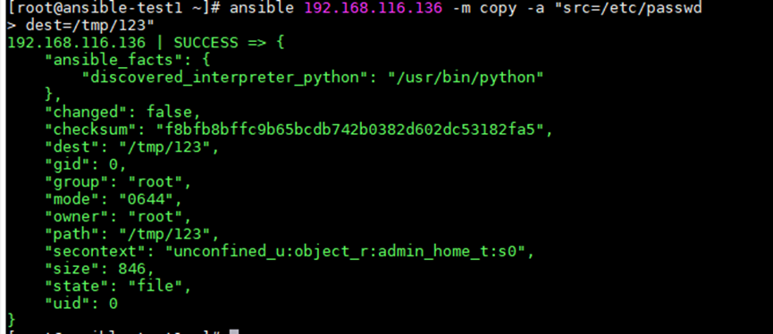 ansible 192.168.2.20 -m copy -a "src=/etc/passwd