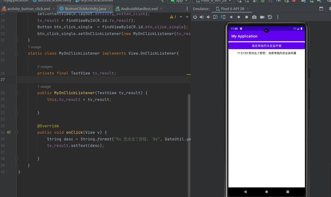 学习了点击事件,再一次学习了Button,花了两个小时。