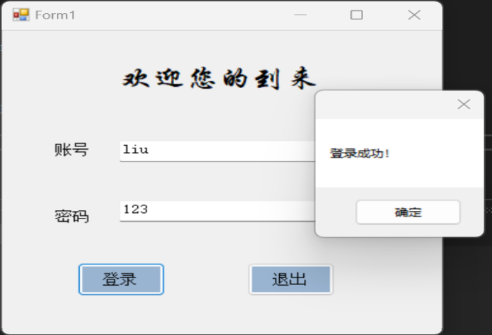2.账号和密码正确,显示登录成功(登录成功后跳转至计算器窗口)