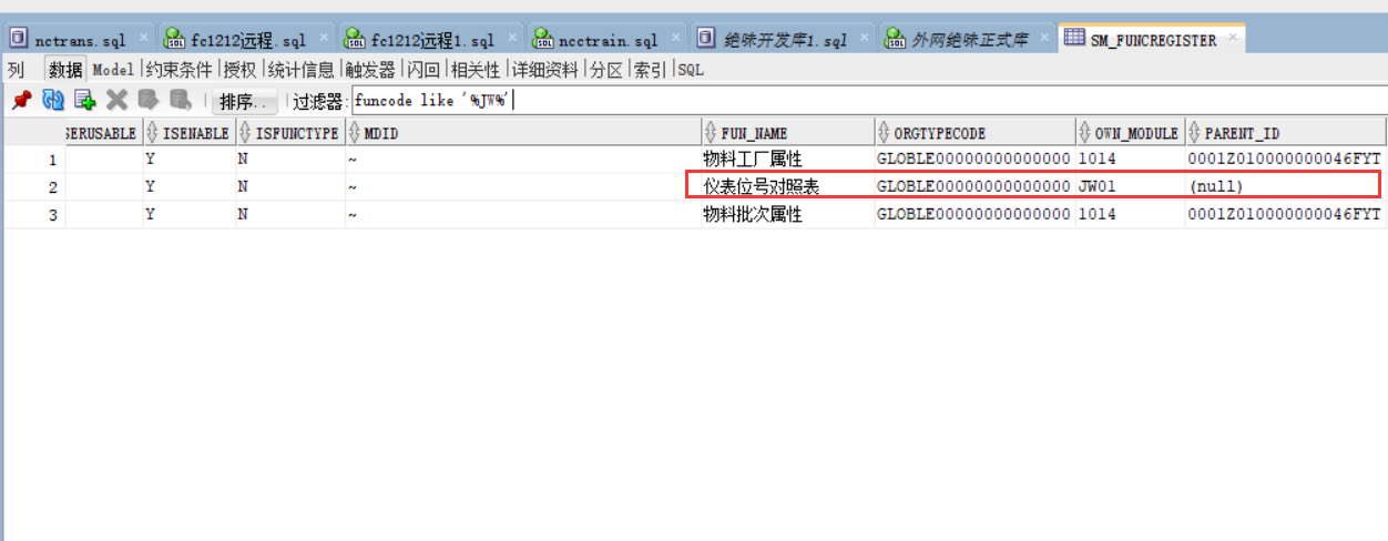 将没有授权的JW01换成已授权的模块入1014,并修改parent_id为1014的改id