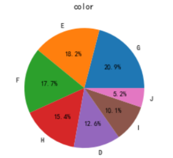 由扇形图可知:clarity主要分布在VS2、SI1、SI2、VS1,其中的I1、IF占比很少;而color中G的占比最大,J最小;cut中切割理想(Ideal)的占比最大,失败的很少。