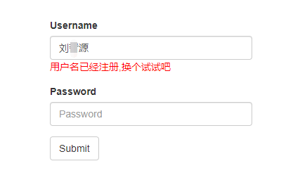 <form> <div id="bigbox"> <div class="form-group"> <label >Username</label> <input type="text" class="form-control" id="userName" name="userName" placeholder="您的用户名"><span id="span"></span> </div> <div class="form-group"> <label for="exampleInputPassword1">Password</label> <input type="password" class="form-control" id="exampleInputPassword1" placeholder="Password"> </div> <button type="submit" class="btn btn-default">Submit</button> </div> </form>