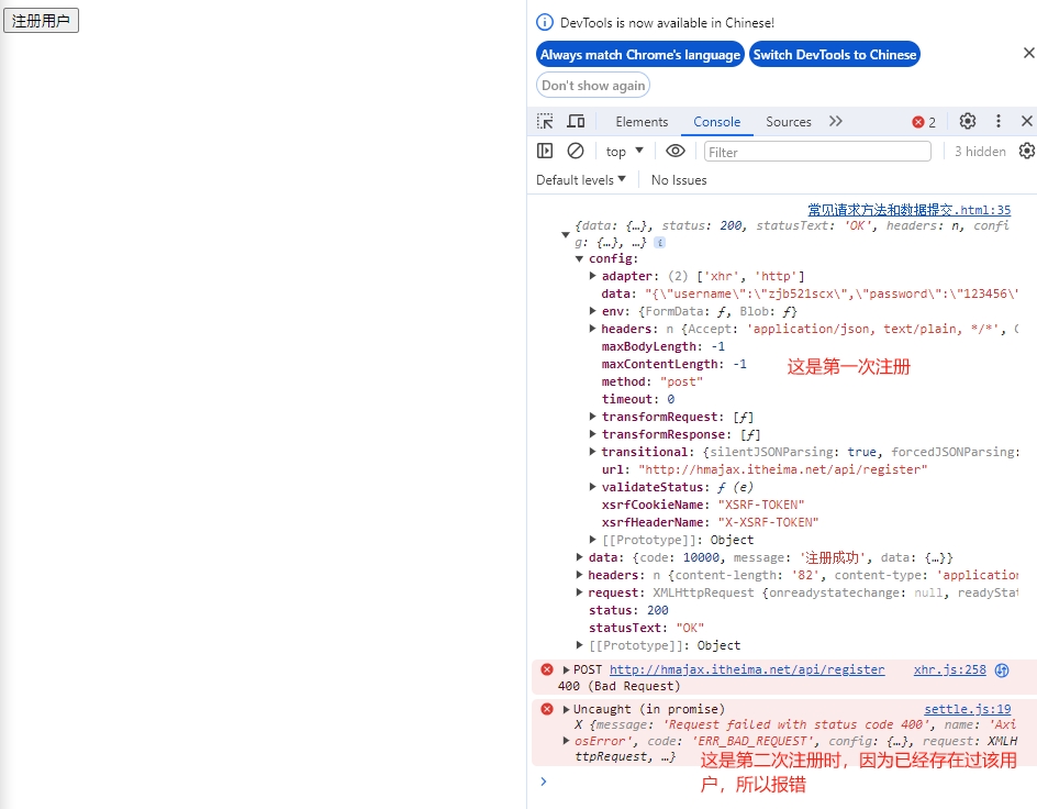 目标:点击按钮,通过axios提交用户和密码,完成注册