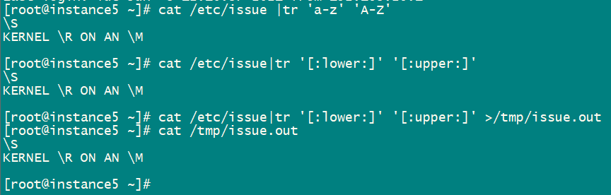 3、将/etc/issue文件中的内容转换为大写后保存至/tmp/issue.out文件中