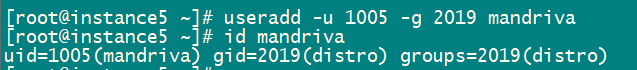 (2)、创建用户mandriva, 其ID号为1005;基本组为distro;