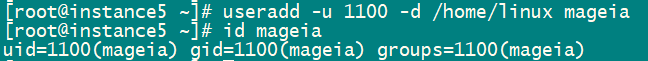 (3)、创建用户mageia,其ID号为1100,家目录为/home/linux;
