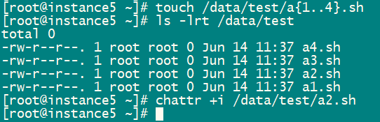 (3)、user1在/data/test目录下创建文件a1.sh, a2.sh, a3.sh, a4.sh,设置所有用户都不可删除1.sh,2.sh文件。