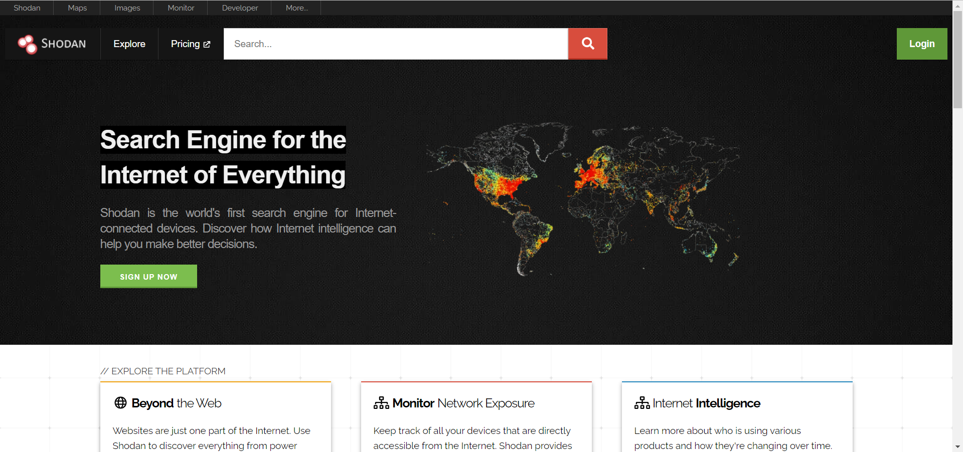 (1)与谷歌不同的是,Shodan不是在网上搜索网址,而是直接进入互联网的背后通道。Shodan可以说是一款"黑暗"谷歌,一刻不停的在寻找着所有和互联网关联的服务器、摄像头、打印机、路由器等等。每个月Shodan都会在大约5亿个服务器上日夜不停地搜集信息。