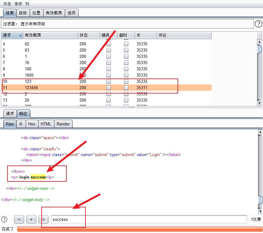 六、为了进一步辨析密码正确和错误的情况,当我们输入正确的账号和密码的时候,返回的不再是35335字节,且不再提示账号或者密码不存在,而这时我们的验证码是没有进行更换过的,这一点可以看出,当我们只要账号和密码输入正确,则验证码也不用更换输入,其返回的字节会有所不同,所以我们可以也用基于表单的暴力破解的方式进行破解。