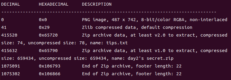 foremost分离,解压缩,得到day1.png和day2.png两张图片,以及一个tips.txt