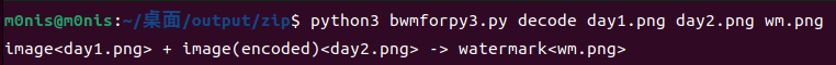 在> https://github.com/chishaxie/BlindWaterMark 找到分离盲水印的脚本,配置相关环境后进行分离