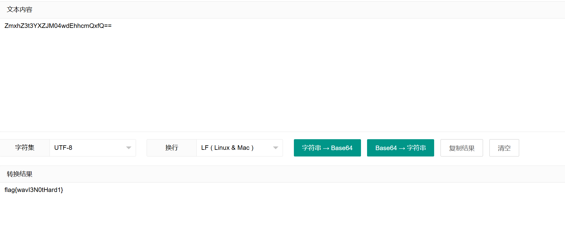 这不就是base64嘛,转换后直接得到flag