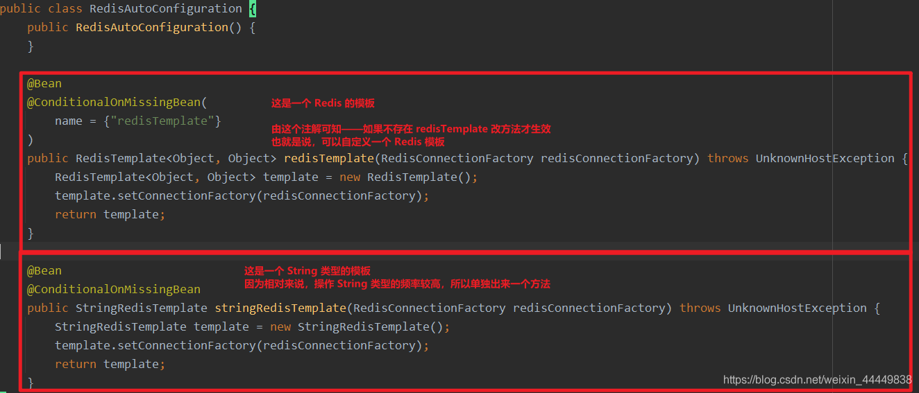 // 这就是之前 RedisAutoConfiguration 源码中的 Bean