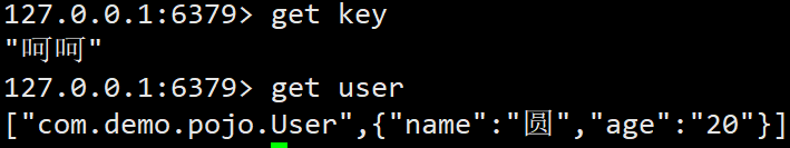 执行 3使用 中的那个测试类,向数据库中插入了一个中文字符串,虽然在 Java 端可以看到返回了中文,但是在 Redis 中查看是一串乱码。