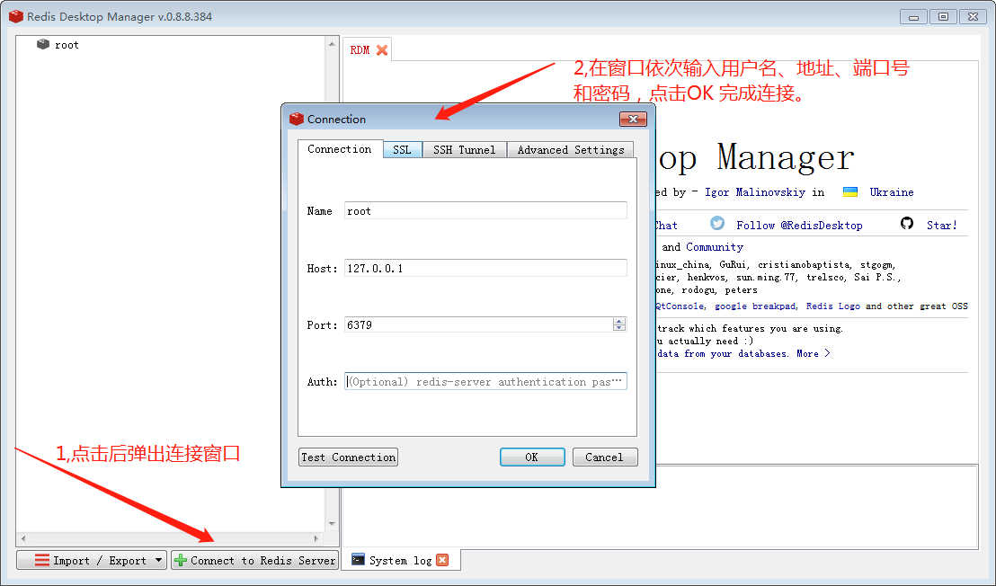如图,输入用户名、密码、地址和端口号就可以直接进行连接了。