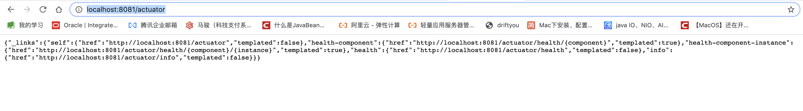 在provider配置后启动项目,打开网页http://localhost:8081/actuator,会显示监听的内容: