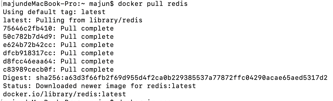 docker pull redis //直接拉取最新版本的redis镜像,并自动安装