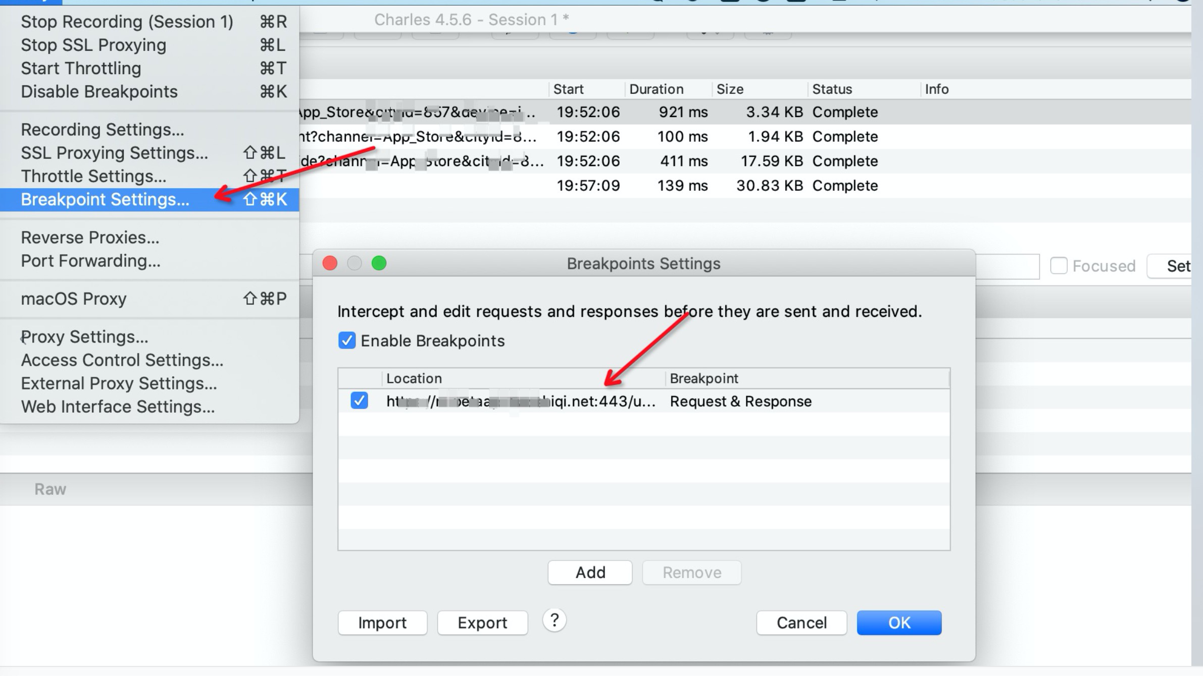 二:点击工具栏Proxy选项->Breakpoints Settings,双击已经勾选的接口