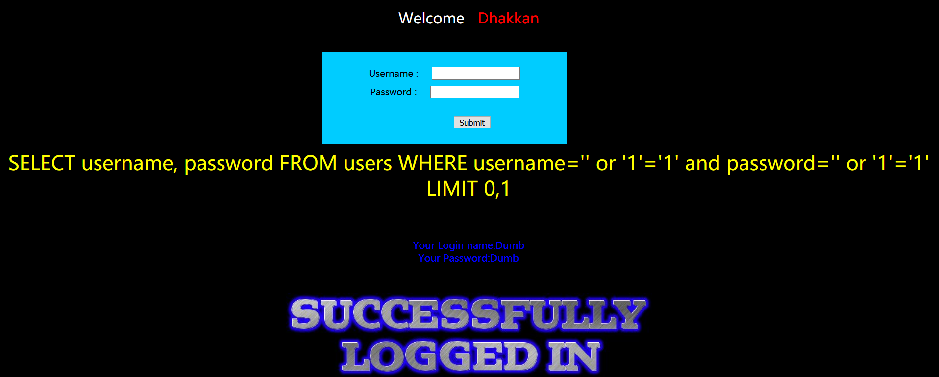 老样子,因为我是直接把sql语句echo出来的,所以构造起来十分简单,先随便输一个用户名和密码