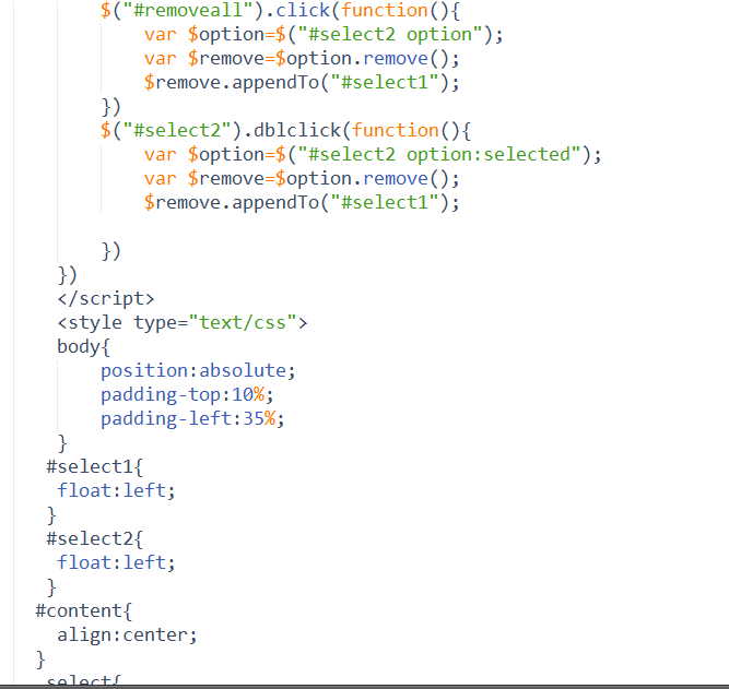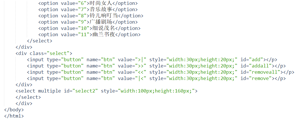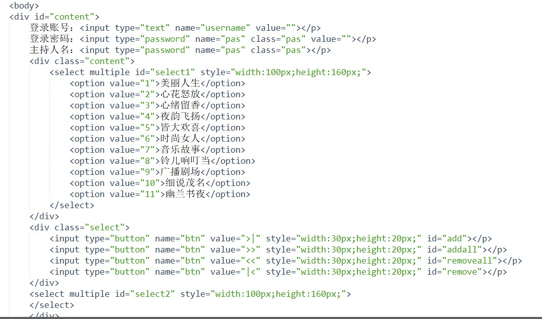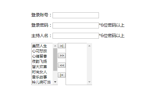 1.实例介绍:用户可通过中间的按钮,将左边选中的选项添加到右边,也可以将右边的选项添加到左边,或者双击,添加给对方。