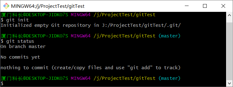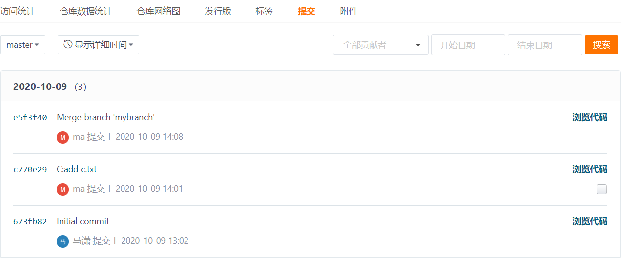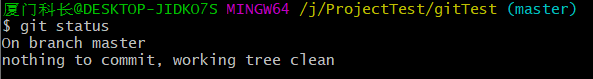 可以看到,当前版本只有一条主master,并且当前没有任何提交