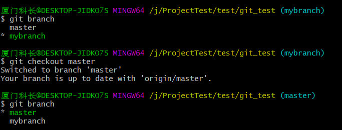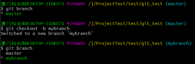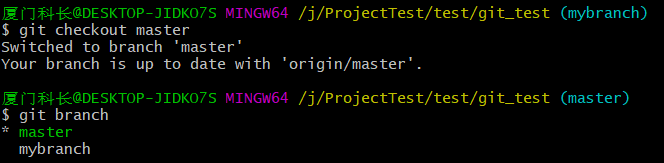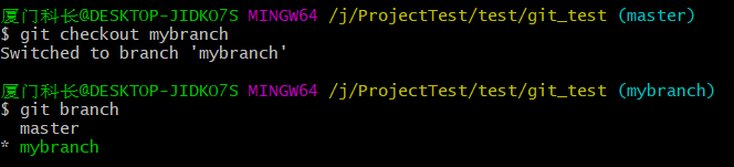 要完成上图的操作,首先切换到刚才创建的分支mybranch上