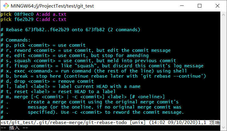 | git commit -m "log info" | 暂存->版本仓库,并添加标注信息 |