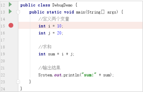 - 选择要设置断点的代码行,在行号的区域后面单击鼠标左键即可