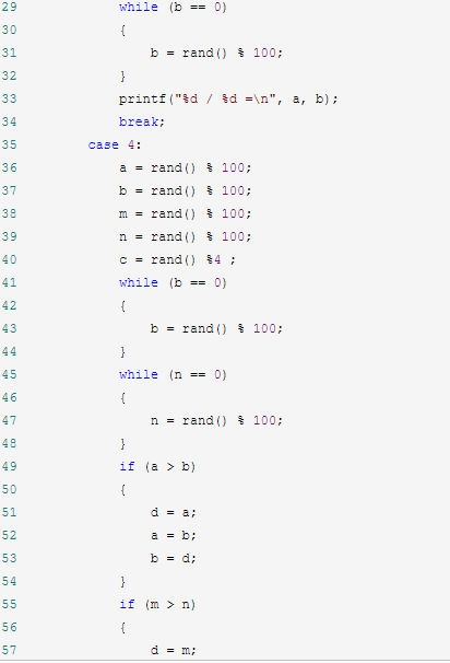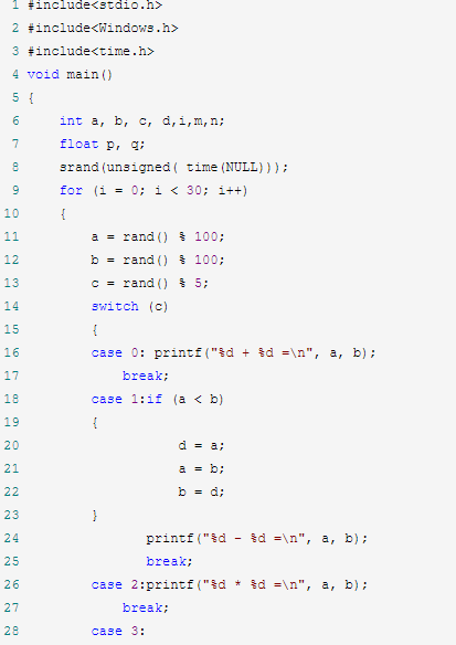 3.因为题目要求是随机30道题,所以运用随机生成数函数srand()和rand()。