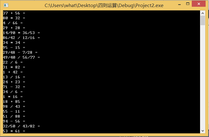 (1)自动生成10道100以内的2个操作数的四则运算算式(+ - * /),要求运算结果也在100以内