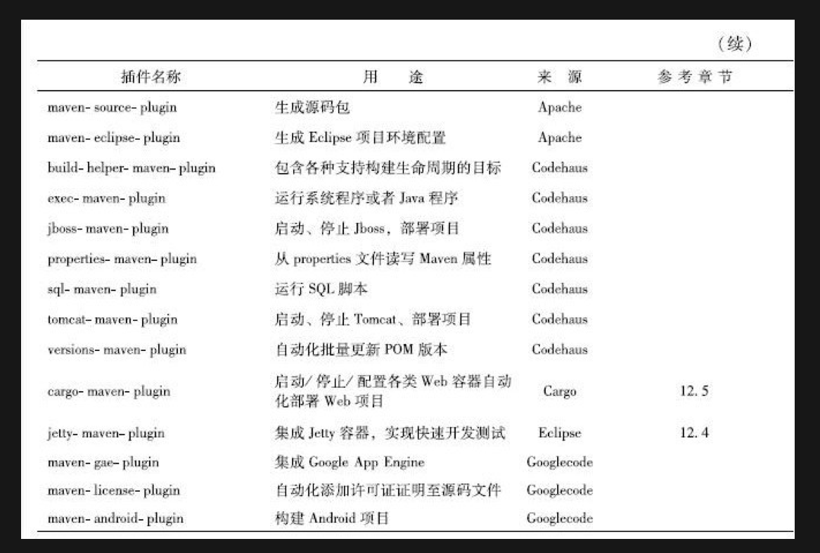 ·来自Apache的完整插件列表在:http://maven.apache.org/plugins/index.html。
